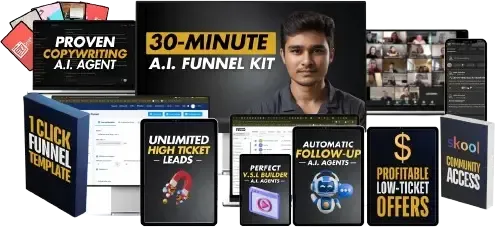 This is a done-for-you implementation bundle — not a course. You get a ready-to-install funnel template, a proven ad framework, a battle-tested sales script, and AI-powered tools.