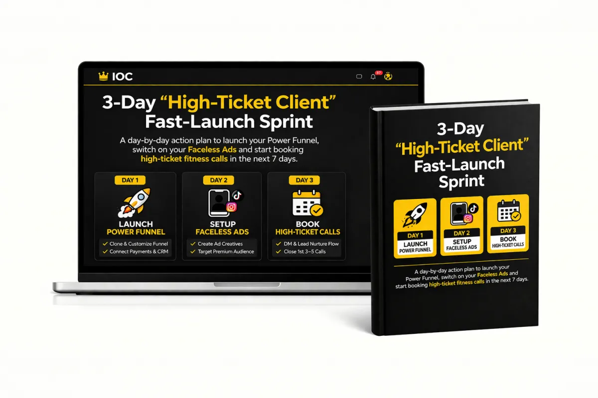 A day-by-day action plan to launch your Power Funnel, switch on your Faceless Ads and start booking high-ticket fitness calls in the next 7 days.